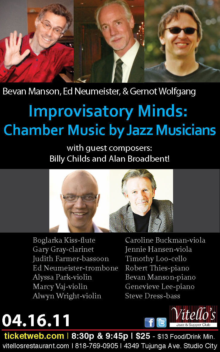Ed Neumeister, and Gernot Wolfgang were joined by special guest composers Alan Broadbent and Billy Childs at Vitello’s on Saturday evening,